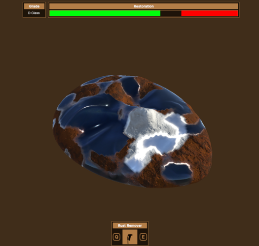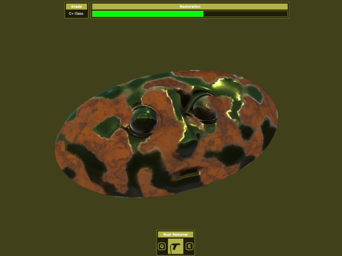 Masks are randomly generated with a rust being placed in various places on the mask to task the player with difficulty of cleaning it properly. The greater you clean the mask the higher your score is. The more you damage the mask the lower your overall score can be.